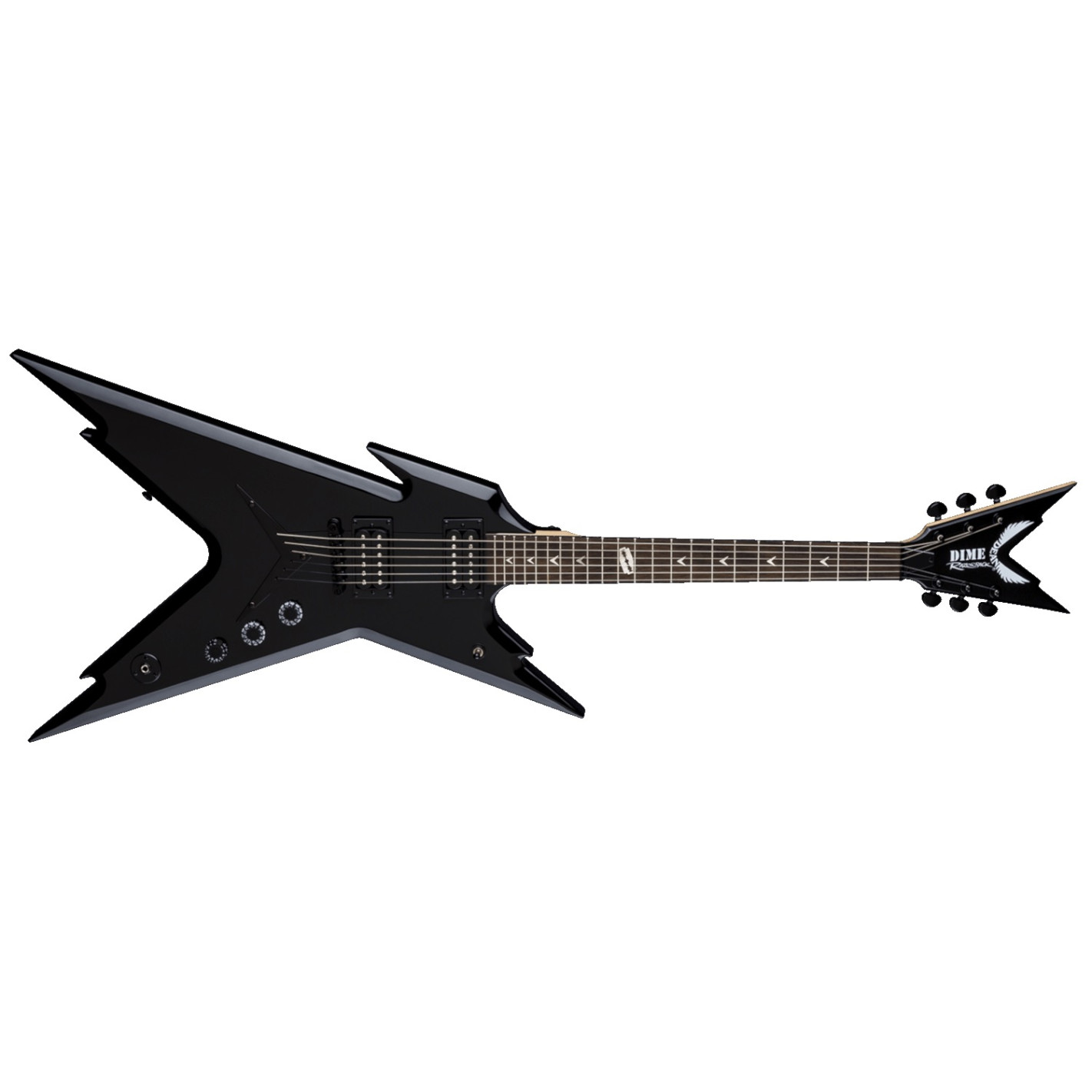 Dimebag Darrell es muy respetado por tener uno de los mejores sonidos de todos los tiempos. Su legado vive con la guitarra eléctrica Dimebag Razorback DB. El cuerpo tiene un llamativo, pero equilibrado diseño. El mástil de arce tiene un diapasón de palo de rosa con una incrustación de navaja de afeitar en el duodécimo traste para evocar el famoso collar de Dimebag. Las pastillas Dean Design desatan un tono de vicio que seguro pondrá una sonrisa en la cara de cualquier fan de Dimebag. Esta guitarra eléctrica Dimebag Razorback DB muy asequible viene con el hardware negro, afinadores Grover, un puente Tune-o-Matic y potenciómetros Dimebag.