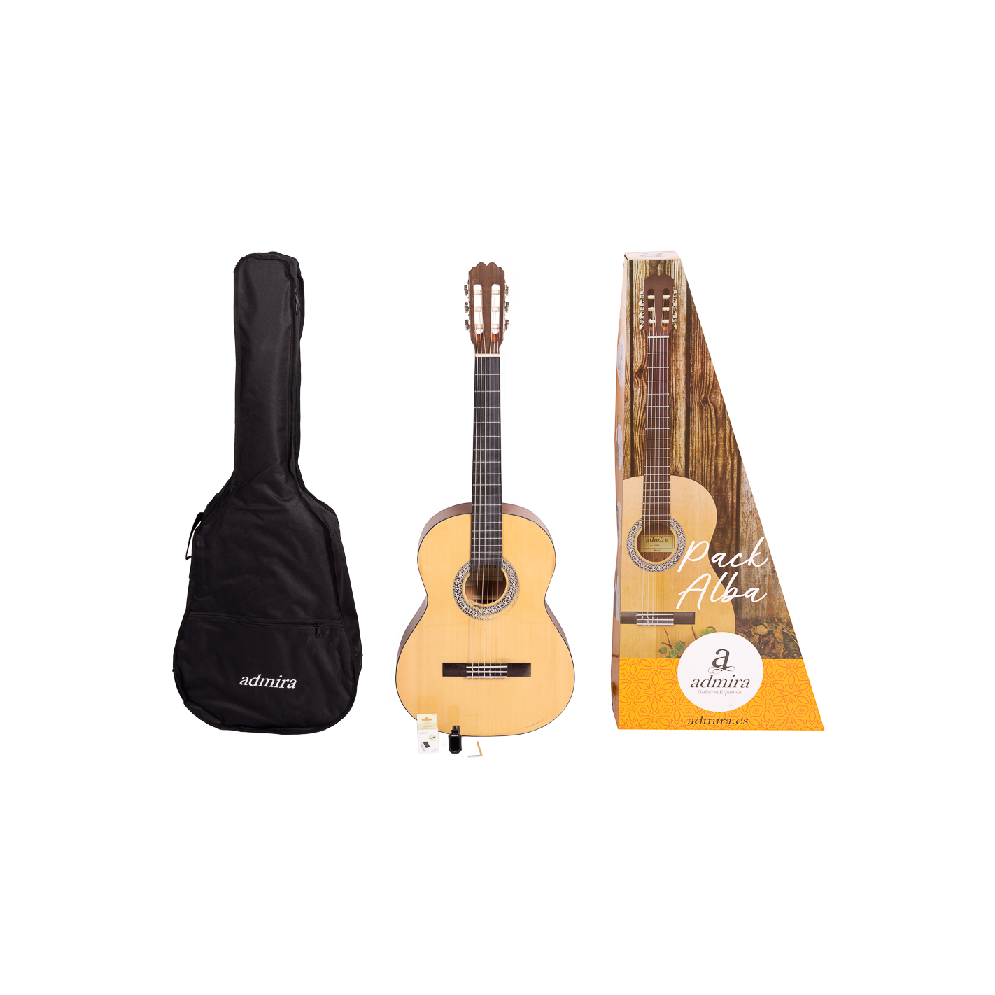 Pack Guitarra Clásica ADMIRA Alba que incluye guitarra 4/4, funda de nylon y afinador digital.