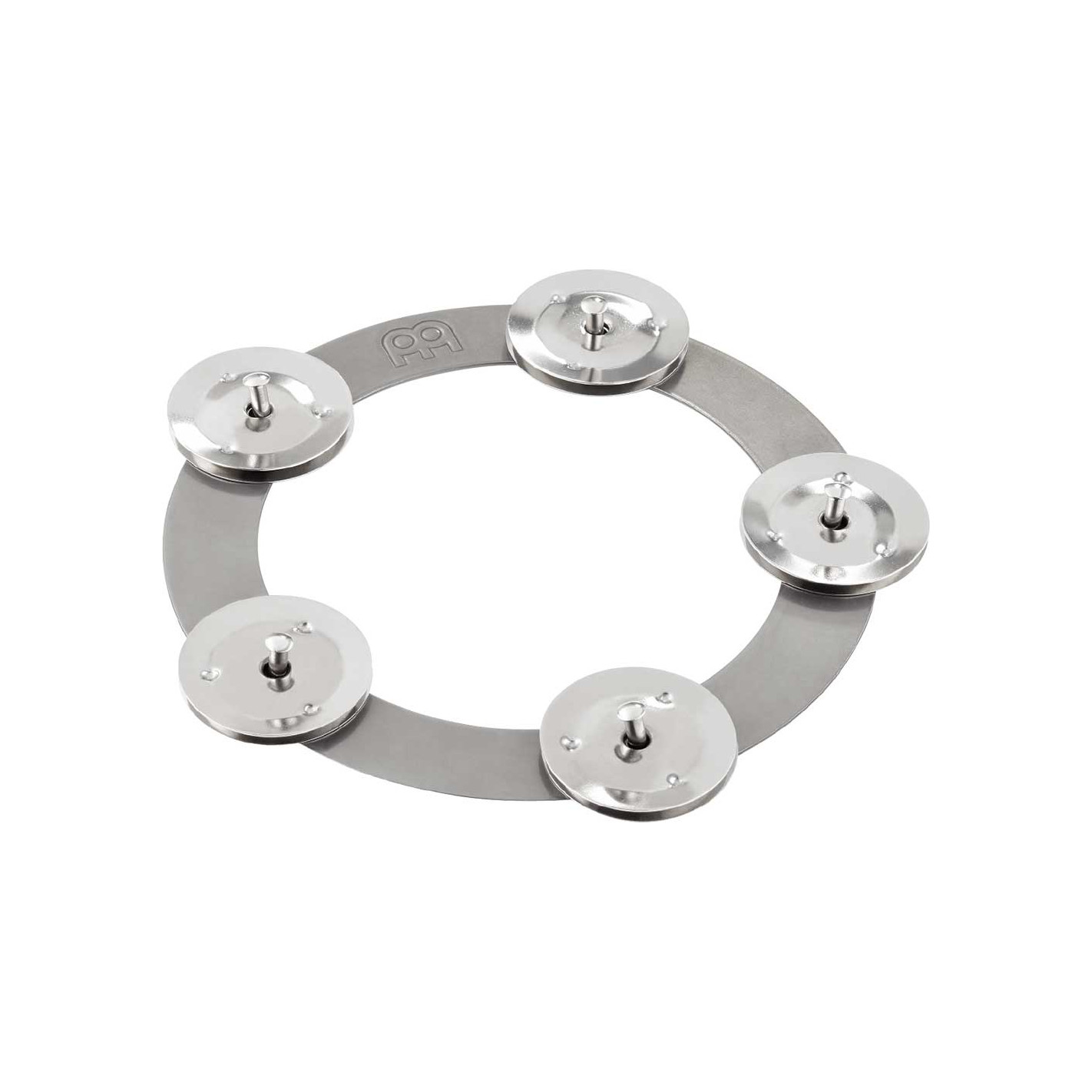 ACCESORIO PLATOS 'ARO METÁLÍCO CON SONAJAS DE 6''. Con un diámetro de 6'', hecho de acero, con cinco pares de sonajas, y rápido de montar. Incorpora un ''ching'' en tus backbeats colocando el Meinl Ching Ring directamente en tus platos. Ideales para hi-hats, estos jingles de acero agregarán un toque diferente a tu sonido al añadir un sonido brillante que se combinará perfectamente con tus ritmos. Coloca el Cring en crashes y rides, para conseguir algunos sonidos verdaderamente innovadores.