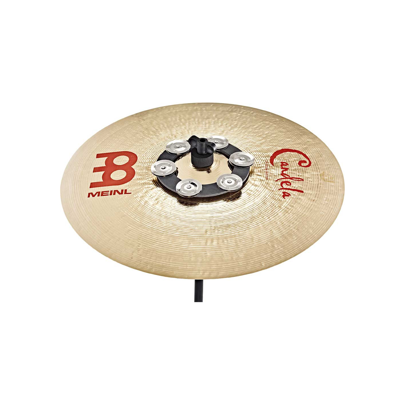 ACCESORIO PLATOS Aro metálico de sonajas de 6'' SCRING. Con un diámetro de 6'', aro de espuma, con cinco pares de sonajas y rápido de montar. Incorpora un ''ching'' en tus backbeats colocandolo directamente en tus platos. Ideales para hi-hats, estos jingles de acero agregarán un toque diferente a tu sonido al añadir un sonido metálico que se combinará perfectamente con tus ritmos. Coloca el Scring en crashes y rides, para conseguir algunos sonidos verdaderamente innovadores.