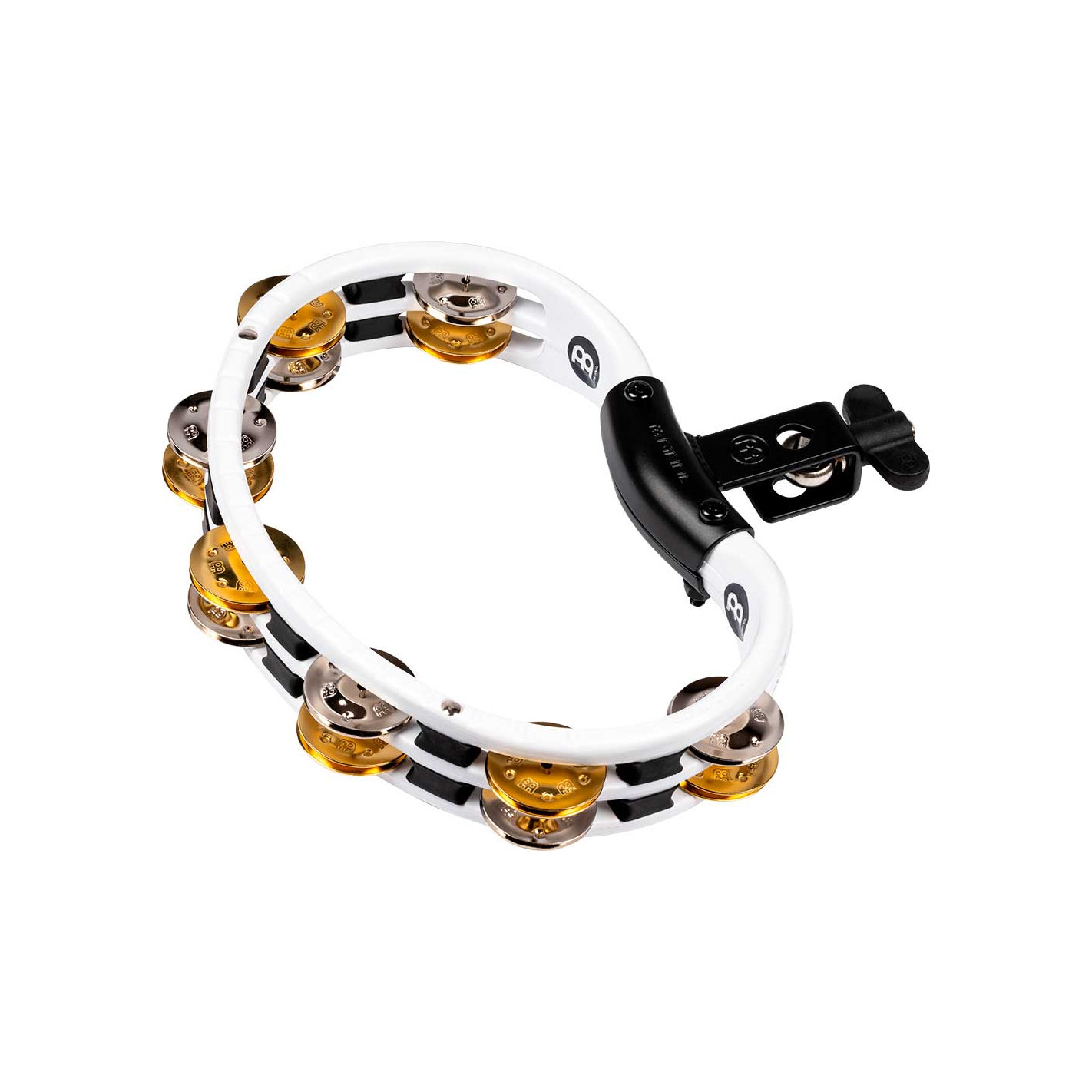 PANDERETA PARA BATERÍA Pandereta con enganche en plástico y con jingles de latón y aluminio - blanca. Sonido especial gracias a la combinación de materiales. Snoajas de latón y plata niquelada.