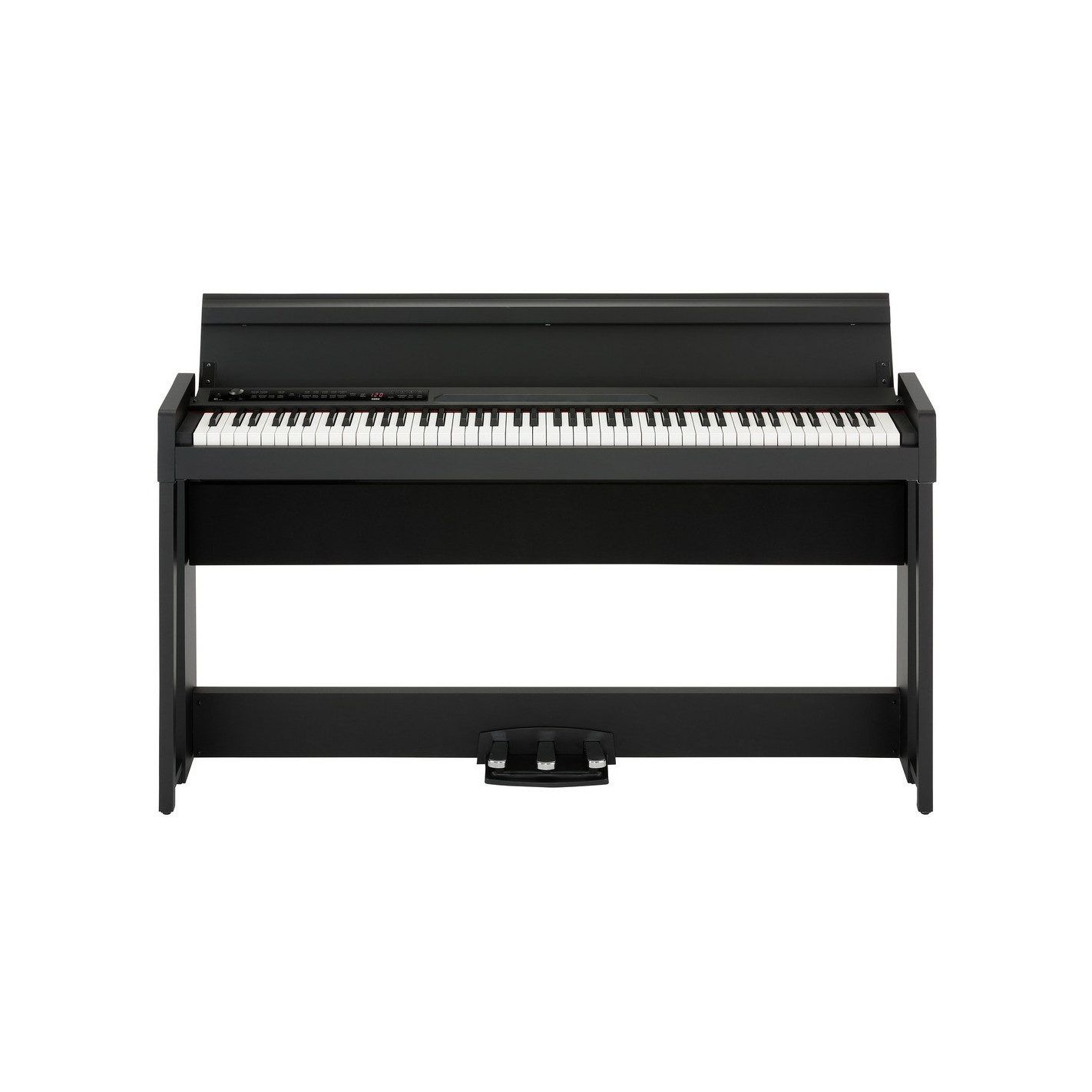 PIANO DIGITAL Nuevo piano digital premium Korg. Teclado RH3, 30 sonidos, grabador de 2 pistas, 50 canciones, función de ayuda al aprendizaje, 3 pedales con función medio pedal, soporte de diseño exclusivo integrado, sistema de amplificación de 50W, MIDI, 2 salidas de auriculares, fabricado en Japón. Elementos incluidos: AC adaptador, soporte dedicado.Características destacadas88 teclas contrapesadas con acción martillo (RH3)30 sonidosPolifonía de 120 notas50 canciones de demostraciónEfectos: 'Brilliance', 'Reverb' y 'Chorus'MetrónomoGrabador de 2 pistas (máx. 14.000 notas)3 pedalesConexiones: Salida de línea, MIDI (entrada, salida), 2 de auriculares, PedalSistema de 2 altavoces de 25WDimensiones: 1346 x 347 x 770mm (ancho x profundo x alto)Peso (con soporte): 35kgColor: Negro