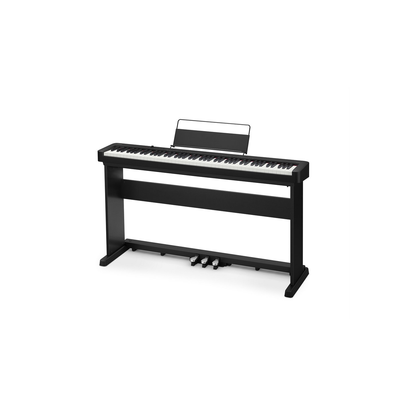 Piano digital CASIO CDP-S160 con soporte y 3 pedales, en color negro.