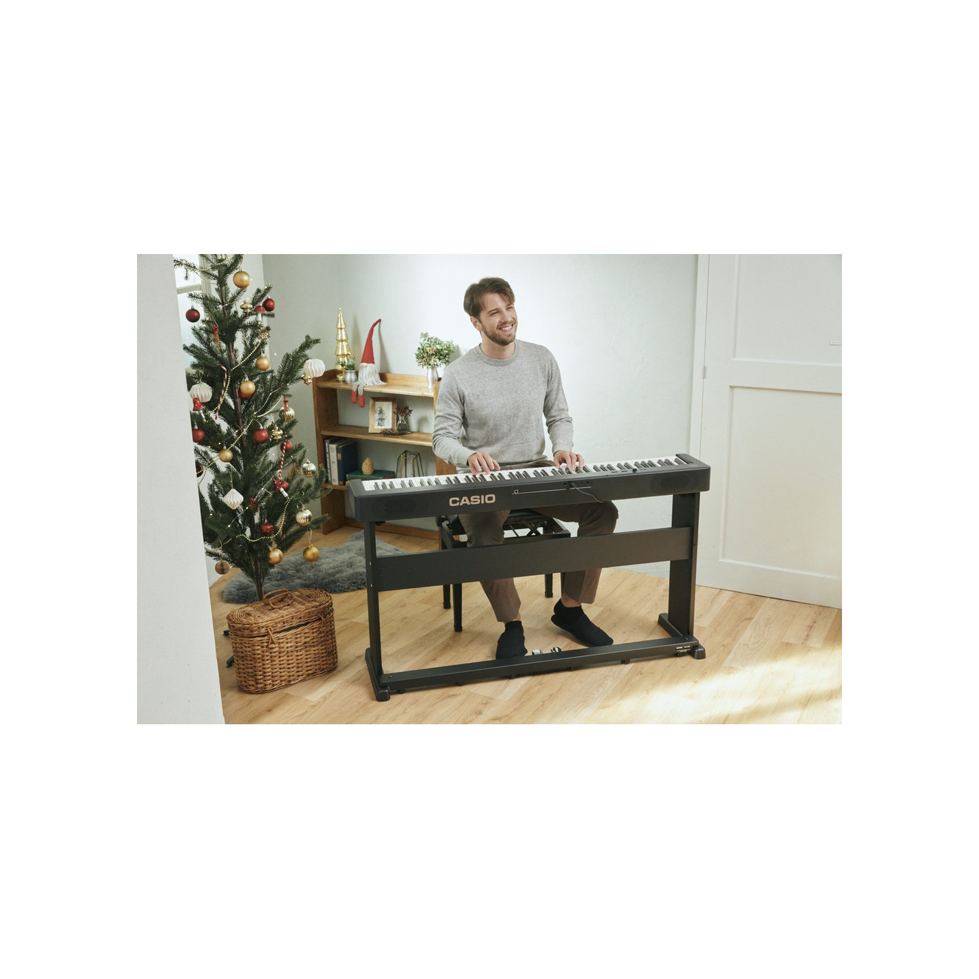 El CDP-S160 es el modelo básico de la serie de pianos digitales CDP-S. Se presenta en un pack con el soporte fijo de tres pedales CS-470P.