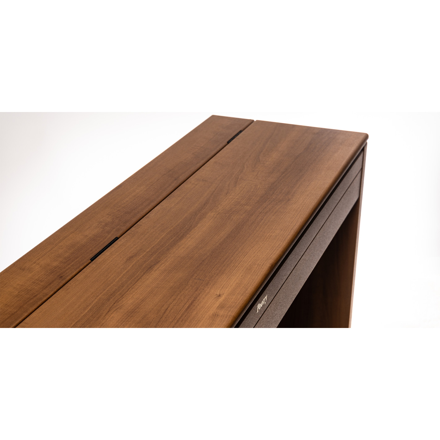 El nuevo mueble es mucho más que una declaración estética: desempeña un papel fundamental en la forma del sonido del instrumento. Su estructura rígida y herméticamente sellada ayuda a controlar la resonancia de los altavoces y mejora la definición en todo el rango de frecuencias. Para garantizar una proyección directa y clara, los altavoces están situados en la parte frontal de la unidad, evitando cualquier amortiguación del sonido incluso cuando se coloca junto a una pared. Con una fuente de alimentación integrada, el E1 Air elimina la necesidad de un adaptador externo, manteniendo una configuración limpia y discreta, ideal para espacios reducidos.