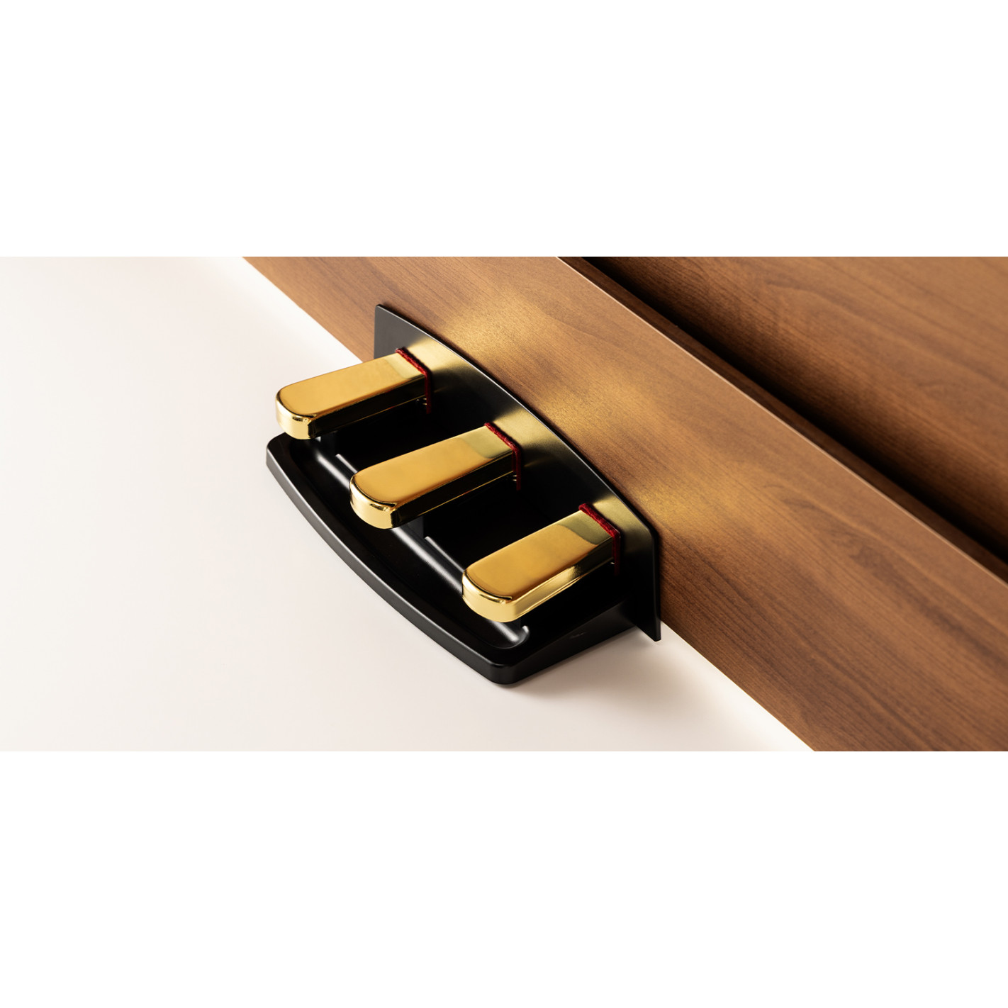 Poetry Magnifique incluye un sistema completo de tres pedales —damper, soft y sostenuto— como en un piano tradicional. Tanto el pedal damper como el soft admiten el uso de medio pedal, permitiendo un mayor nivel de matiz y control en la interpretación. Además, la posición de los pedales ha sido cuidadosamente ajustada para ofrecer una experiencia de ejecución más natural y cómoda.