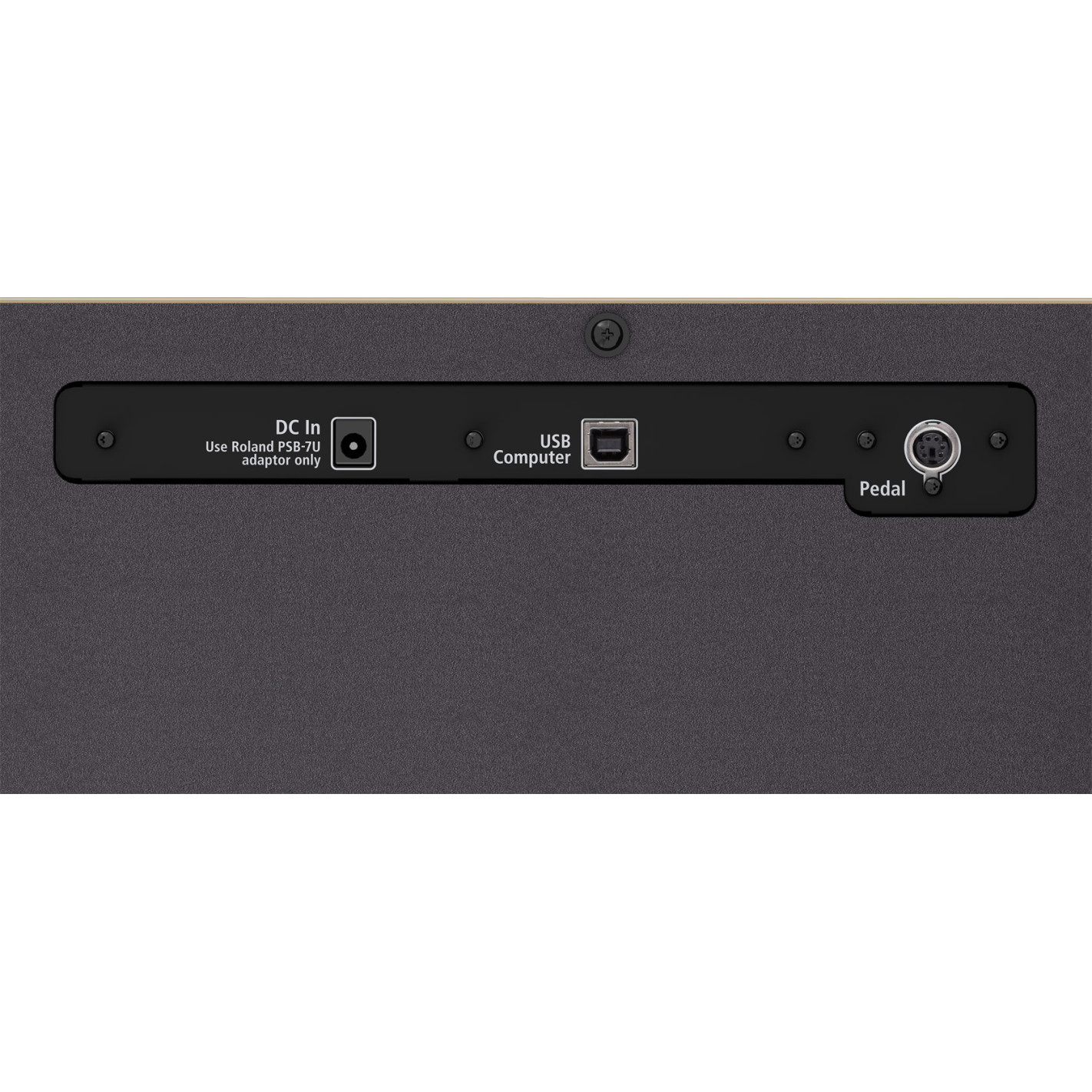 - Incluye fuente de alimentación Roland PSB 7U, cable, gancho para auriculares, atril y manual de usuario