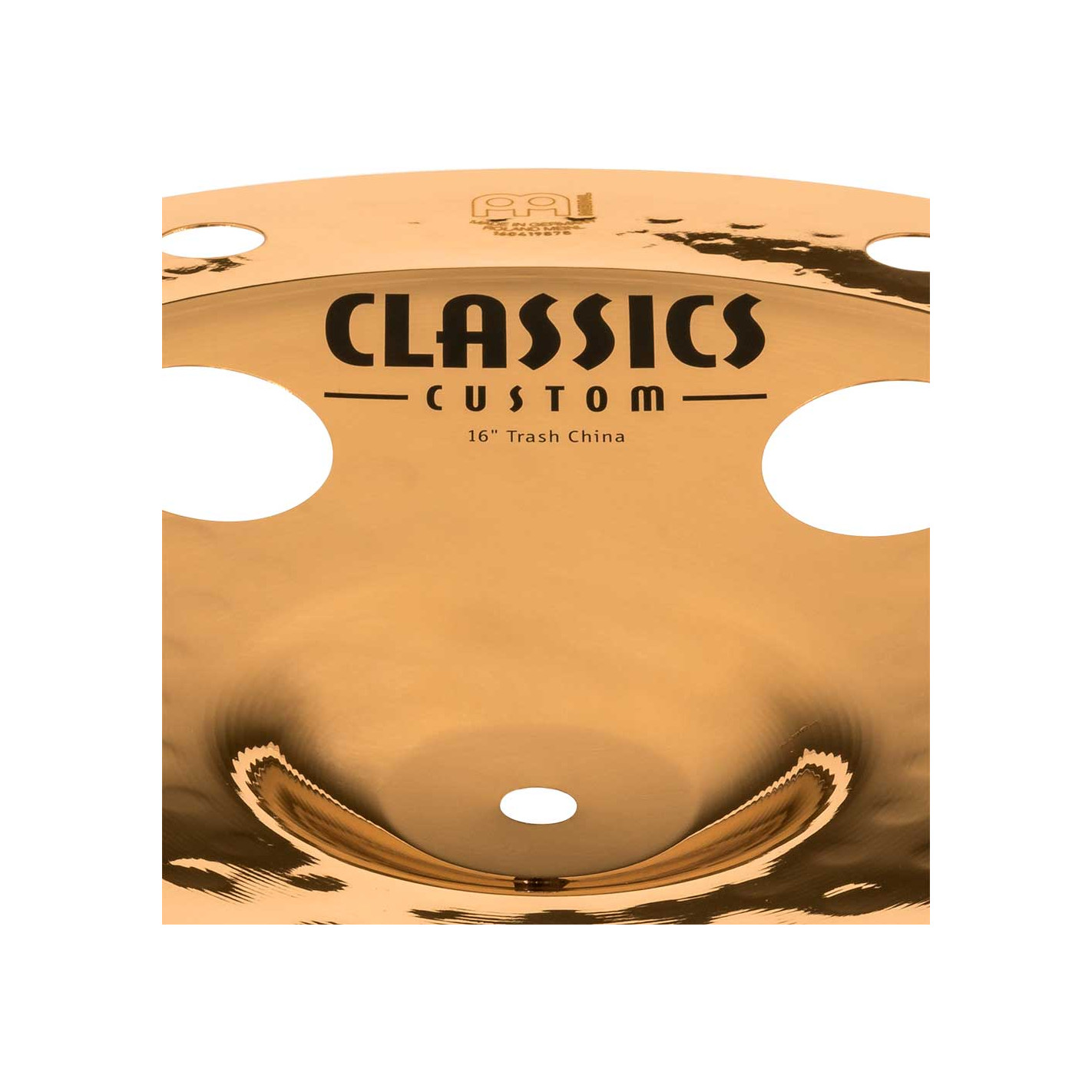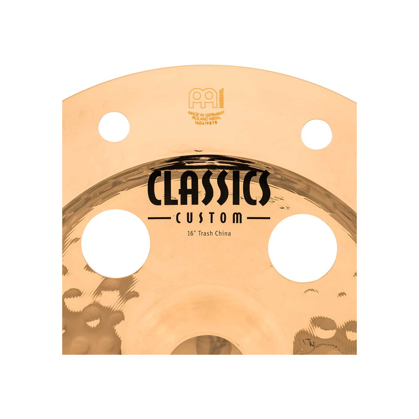PLATO CHINA 'Trash China 16'' Serie Classics Custom. Los platos la serie Classics Custom se producen mecánicamente en Alemania sobre una aleación B10. En el proceso intervienen varias técnicas, tanto de presión como de martilleado computerizado. Además de ello reciben un lacado brillante que les infiere un acabado brillante espectacular.