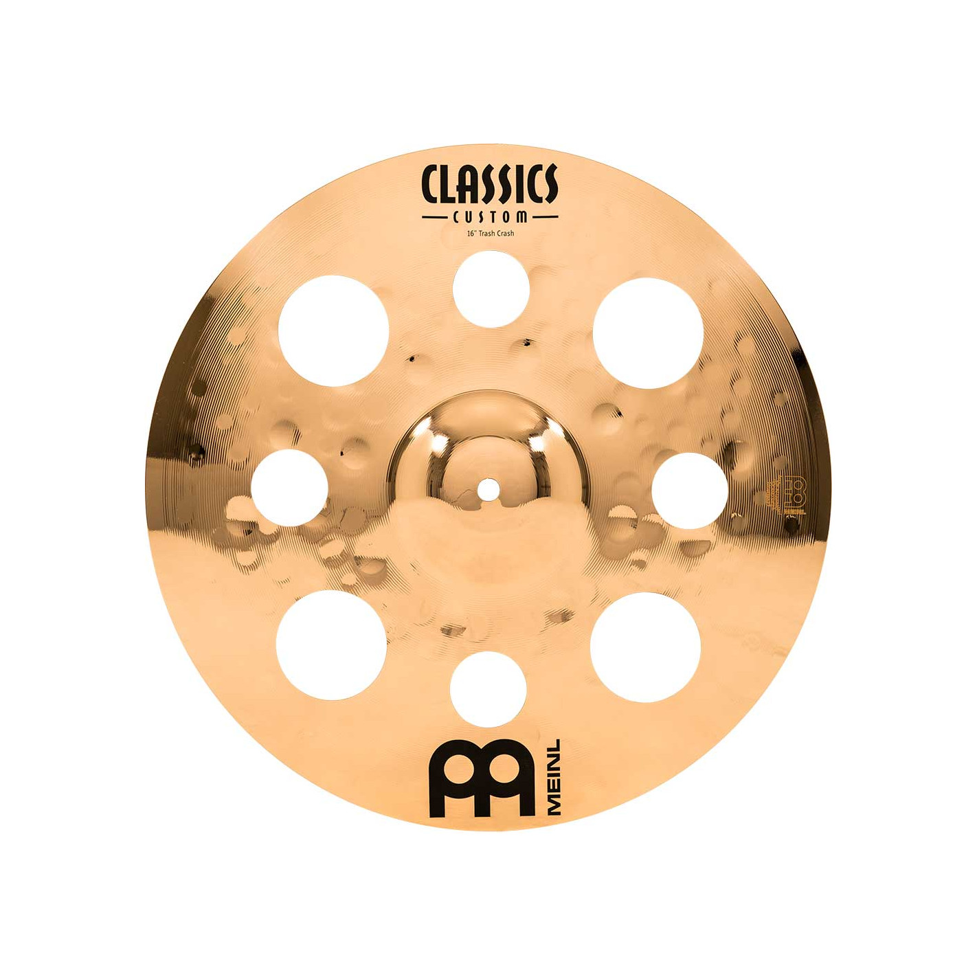 PLATO CRASH 'Trash Crash 16'' Serie Classics Custom. Los platos la serie Classics Custom se producen mecánicamente en Alemania sobre una aleación B10. En el proceso intervienen varias técnicas, tanto de presión como de martilleado computerizado. Además de ello reciben un lacado brillante que les infiere un acabado brillante espectacular.