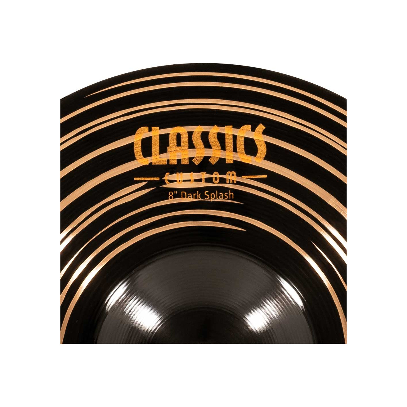 PLATO SPLASH Splash 8'' Serie Classics Custom Dark. Los platos la serie Classics Custom Dark se producen mecanicamente en Alemania sobre una aleacion B10. En el proceso intervienen varias tecnicas, tanto de presion como de martilleado computerizado. Ademas de ello tiene un acabado negro brillante que les infiere una imagen espectacular y un sonido particular.