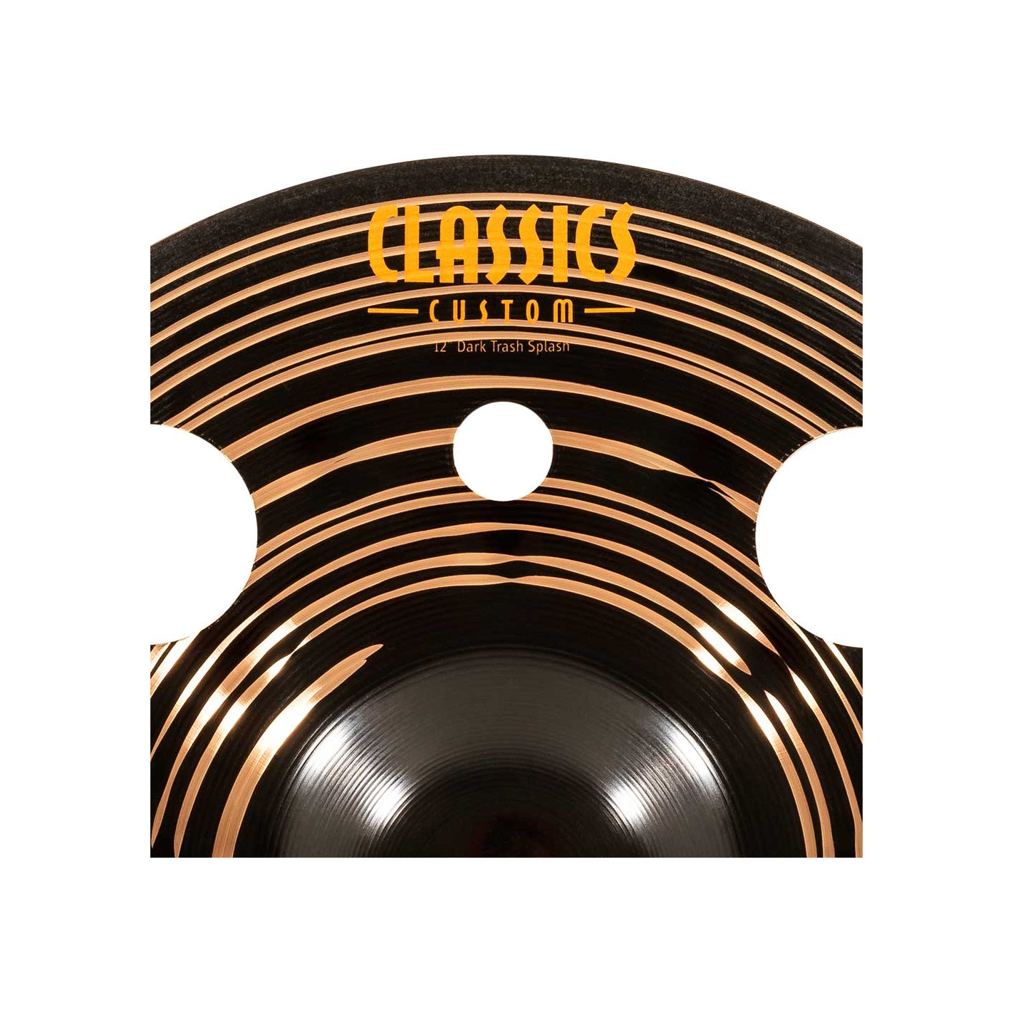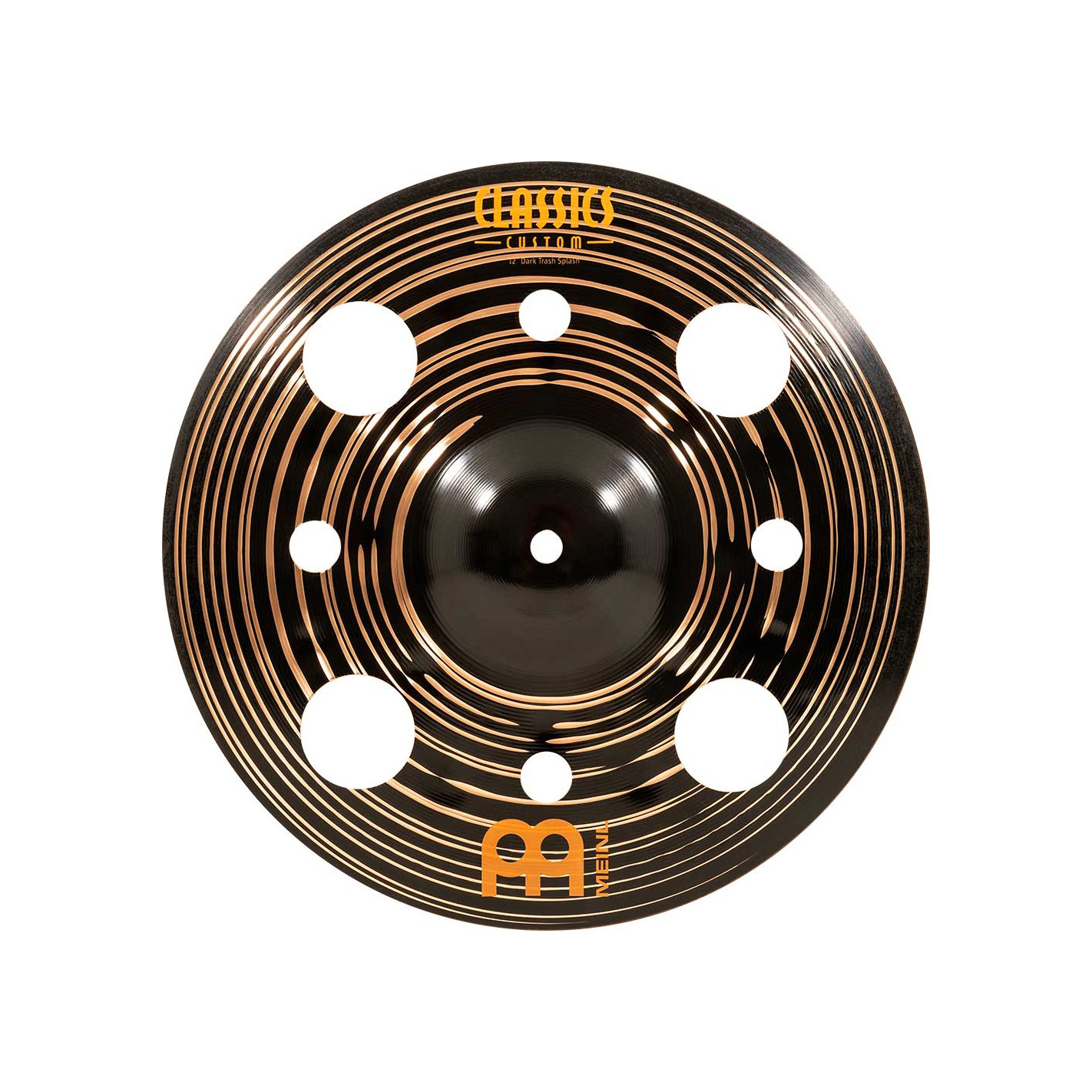 PLATO SPLASH Trash Splash 12'' Serie Classics Custom Dark. Los platos la serie Classics Custom Dark se producen mecánicamente en Alemania sobre una aleacion B10. En el proceso intervienen varias técnicas, tanto de presion como de martilleado computerizado. Además de ello tiene un acabado negro brillante que les infiere una imagen espectacular y un sonido particular.