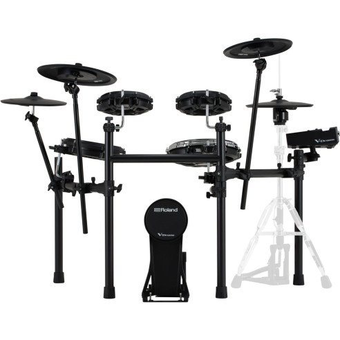 Batería electrónica Roland TD316 V-Drums - Kit intermedio de la serie V-Drums 3 con diseño compacto y características pensadas para directo. Módulo V31 ampliable con generador de percusión avanzado heredado del modelo V71, compatible con expansiones de Roland Cloud. Caja PD-12P con triple sensor, detección posicional, barridos de escobillas y articulaciones de aro/centro. Toms PD-8H y PD-10H con sensores desplazados para dinámica natural. Bombo KD-10 de baja resonancia y tacto acústico. Hihat VH-10 con control real de abierto/cerrado. Dos crash CY-12C-T de doble zona y ride CY-14R-T de tres zonas con función de silencio. Entrada adicional para pad digital avanzado. Rack MDS-Compact 2 estable y expandible. Conectividad USB-C multicanal audio/MIDI, Bluetooth y control inalámbrico por app. Funciones didácticas y compatibilidad con Melodics. Módulo V31 ampliable con generador de percusión avanzado heredado del modelo V71, compatible con expansiones de Roland Cloud. Caja PD-12P con triple sensor, detección posicional, barridos de escobillas y articulaciones de aro/centro. Toms PD-8H y PD-10H con sensores desplazados para dinámica natural. Bombo KD-10 de baja resonancia y tacto acústico. Hihat VH-10 con control real de abierto/cerrado. Dos crash CY-12C-T de doble zona y ride CY-14R-T de tres zonas con función de silencio. Entrada adicional para pad digital avanzado. Rack MDS-Compact 2 estable y expandible. Conectividad USB-C multicanal audio/MIDI, Bluetooth y control inalámbrico por app. Funciones didácticas y compatibilidad con Melodics
