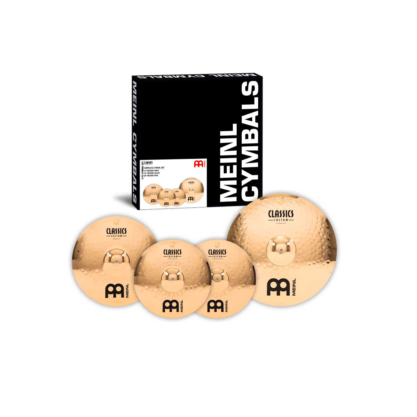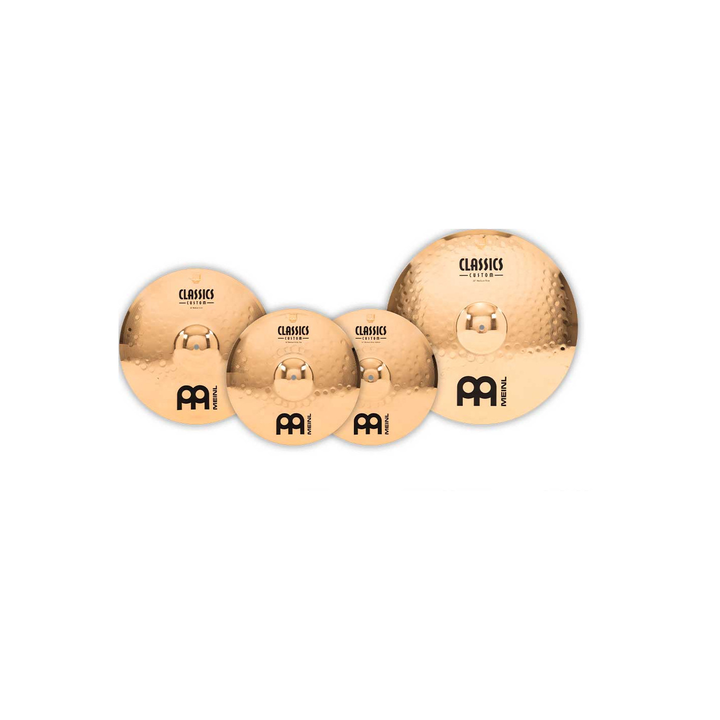 PACK DE PLATOS Set platos HIHAT 14' CRASH 16' RIDE 20' Serie Classics Custom. Los platos la serie Classics Custom se producen mecánicamente en Alemania sobre una aleación B10. En el proceso intervienen varias técnicas, tanto de presión como de martilleado computerizado. Además de ello reciben un lacado brillante que les infiere un acabado brillante espectacular.