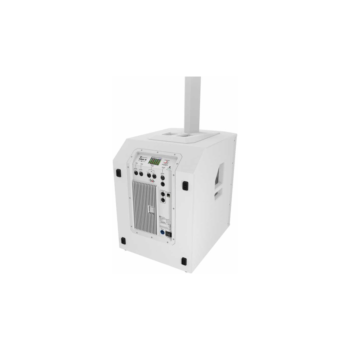 Sistema de sonido portátil, compuesto por un subwoofer de 15 y una columna con ocho transductores de alta frecuencia de 4,7. Ofrece portabilidad, gran potencia, cobertura con guía de ondas, control DSP, conectividad Bluetooth, audio digital AES/EBU e integración con el ecosistema QuickSmart. El sistema brinda una estética de bajo perfil, facilidad de montaje y sonido de de alta calidad para DJs profesionales, bandas, eventos y salas de conciertos. Dispone de dos entradas combo XLR/TRS, una entrada estéreo XLR/RCA, conectividad digital AES/EBU, enlace QuickSmart Link, emparejamiento Bluetooth en estéreo y conector PowerCON. Integra mezclador, amplificador Clase D de 2000W de potencia, procesador DSP para múltiples configuraciones del sistema dotado de tecnología FIRdrive y funcionalidad QuickSmartLink. Columna: 8 x altavoces de neodimio de 4,7. Subwoofer: 1 x 15 con bobina de 3. Potencia total: 2000W. Respuesta en frecuencia: 40Hz 18000Hz 3 dB, 35Hz 20000Hz 10 dB. SPL máximo: 133dB 1m. Ángulo de cobertura: 120H x 25V. Frecuencia de cruce: 160Hz. Entradas: 2 x XLR1/4 combo micro/línea, 2 x XLR1/4 combo línea, 1 x RCA Dual Stereo, 1 x XLR AES. Salidas: 1 x XLR mix, 1 x XLR thru, 1 x XLR sub. Conexión QuickSmart Link: 1 x RJ45. Entrada estéreo Bluetooth con TWS. Materiales: contrachapado con revestimiento de poliurea subwoofer, compuesto columna, aluminio poste. Incluye una barra de soporte para el sub y bolsa de transporte. Medidas: 623 mm x 450 mm x 607 mm subwoofer, 1090.1 mm x 131.4 mm x 25.9 mm columna, 745 mm x 66 mm x 95.8 mm poste. Peso: 35,5kg. Color: blanco. '