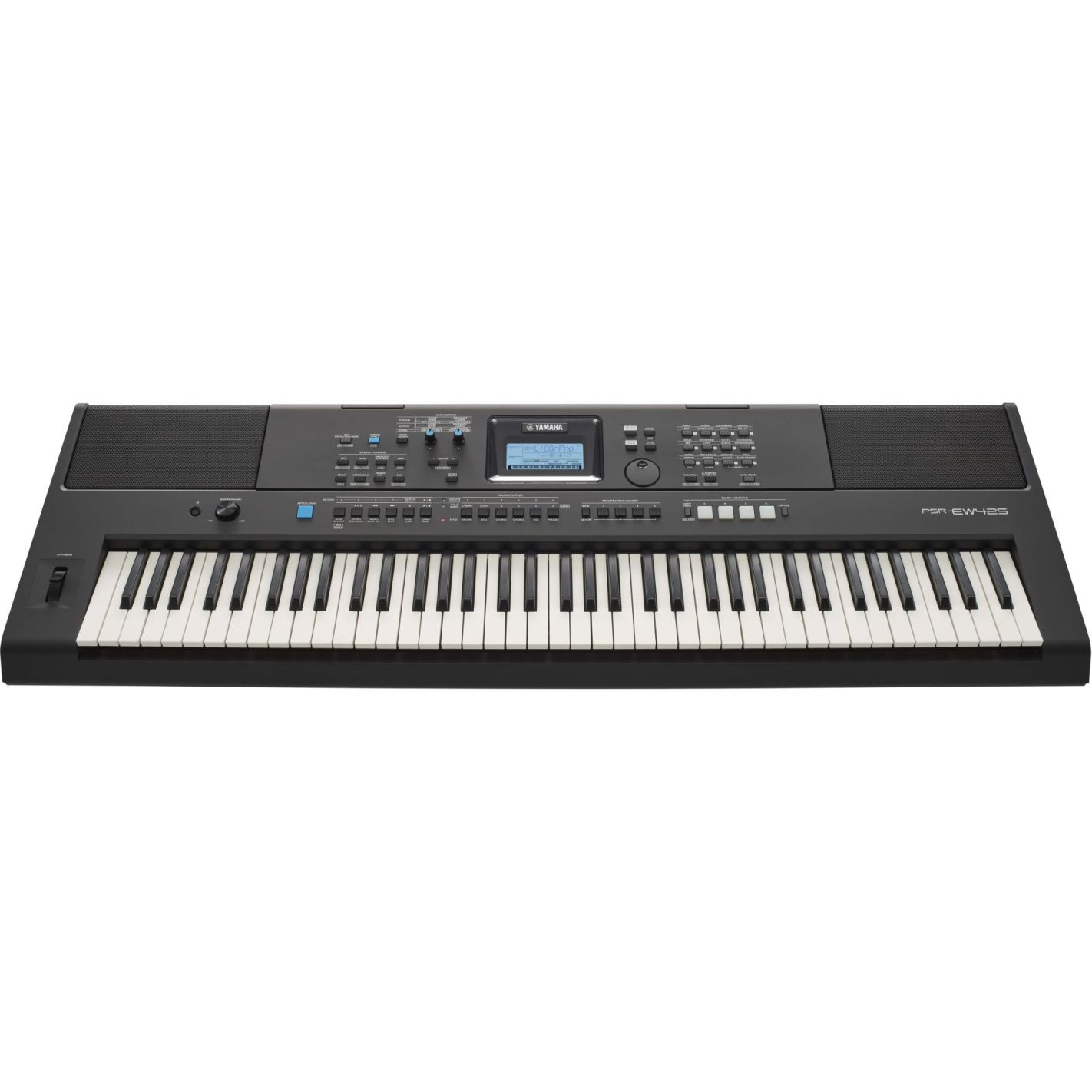 Teclado portátil Yamaha PSR-EW425 - 76 teclas sensibles a la pulsación. 820 Voces, incluida la gama Super Articulation Lite. Sonido de órgano prémium creado con muestras de la serie de alta gama. Yamaha YC. 64 notas de polifonía. 290 Estilos de acompañamiento. Función Quick Sampling. Función Groove Creator. Grabadora de audio USB. Controles asignables en tiempo real, función Motion Effect, rueda de pitch bend. Mayor potencia de DSP. DSP1: 41 tipos, DSP2: 12 tipos. Mega Boost. Función Supresor de Melodía para las entradas de audio analógica y digital. Amplificación de 12 + 12 W. Altavoces con Bass Reflex de 12 cm. Entrada de micrófono y efectos vocales; salidas L/R para conectar un sistema de amplificación. Conexión USB-TO-HOST y USB-TO-DEVICE.