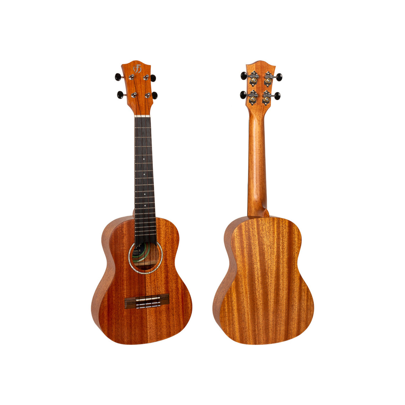 La caoba es considerada desde hace tiempo una de las mejores maderas para los ukeleles. Este ukelele tiene una tapa de bonita caoba sólida que combina a la perfección con los aros y tapa trasera de caoba laminada. Un suave acabado satinado se añade a su estilo imperecedero, consiguiendo una sensación agradable tanto al tacto como a la vista.
