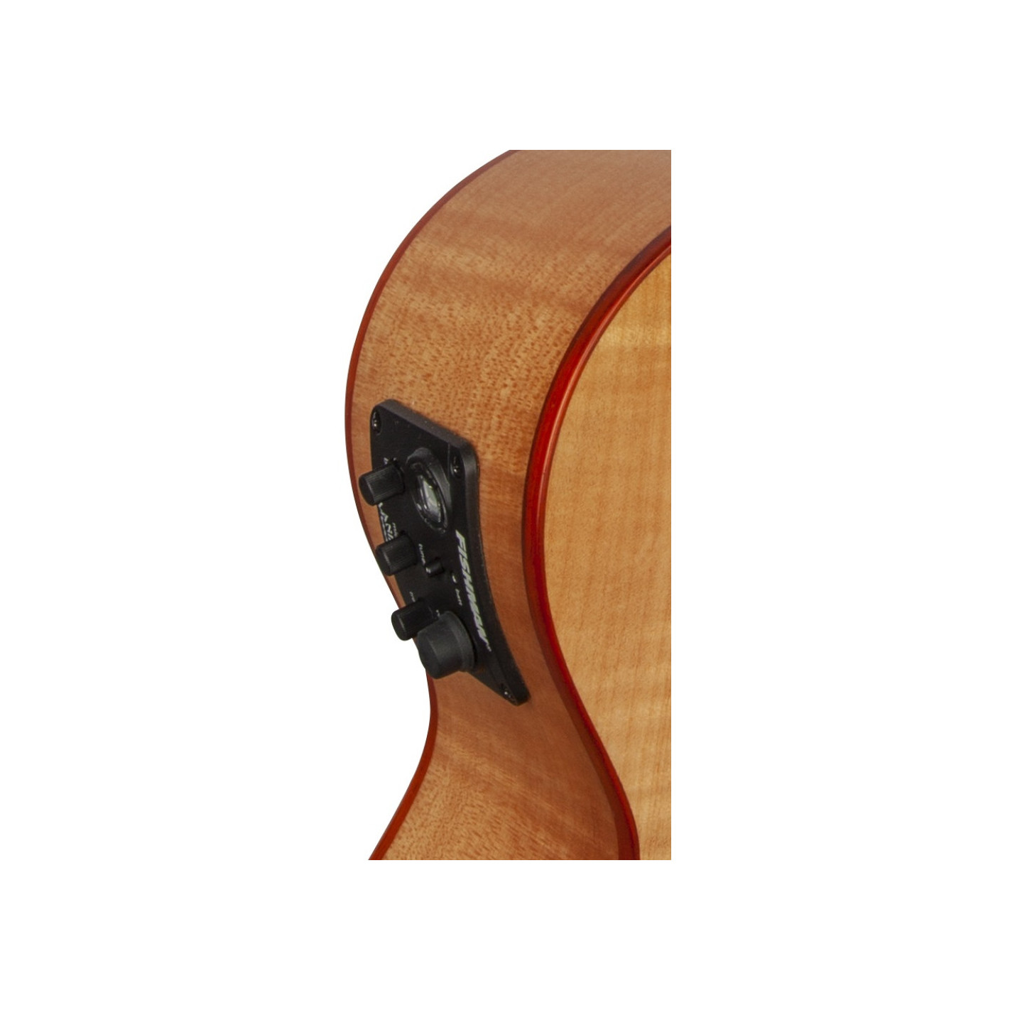 - Preamplificador Fishman Kula con ecualizador de 3 bandas, control de Volumen y afinador integrado