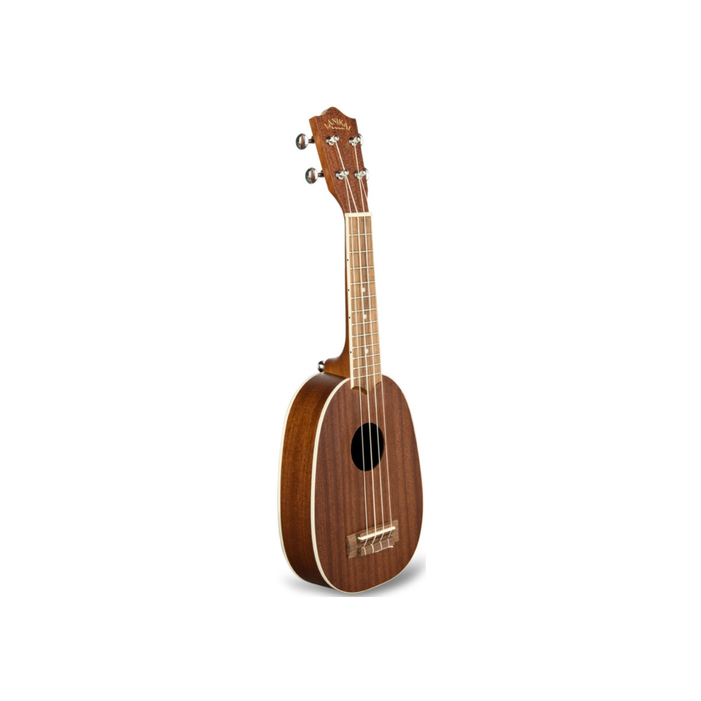 Ukelele soprano con forma de piña Lanikai elaborado con caoba laminada. Este ukelele incorpora afinadores de engranaje y cuerdas Aquila Nylgut que convierten a este instrumento en una buena opción para principiantes y avanzados.