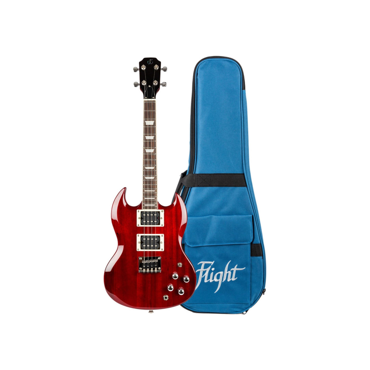 Prepárate para canalizar tu Angus Young interior! El Flight Pioneer, Cherry Red, Solid Body Tenor Ukulele es un ukelele eléctrico de cuerdas de acero, que ofrece las posibilidades tonales de un verdadero ukelele eléctrico de la marca Flight Ukulele. El cuerpo de caoba del Pioneer tiene una forma atemporal en un atrevido rojo cereza. El ukelele cuenta con un diapasón, un puente fijo y pastillas humbucker, cada una con su propio conjunto de controles para el volumen y el tono, además de un interruptor de tres vías. Con su aspecto clásico y su fantástico sonido, estará listo para rockear en cualquier lugar, así como para añadir cualquier pedal de efectos, o stompboxes a su sonido amplificado final. ¡Los Ukeleles Eléctricos Flight representan un gran valor y alta calidad-así que compre el suyo hoy y tome el Flight en su viaje eléctrico!