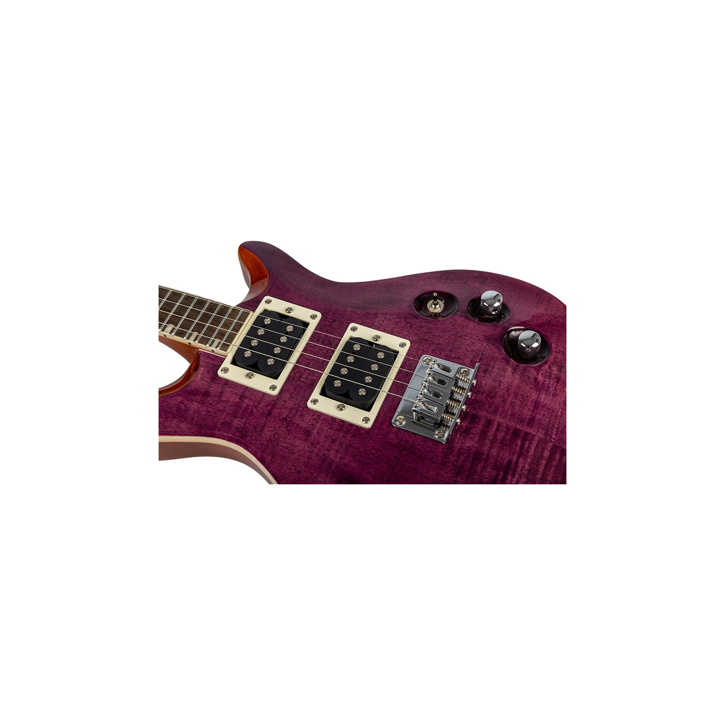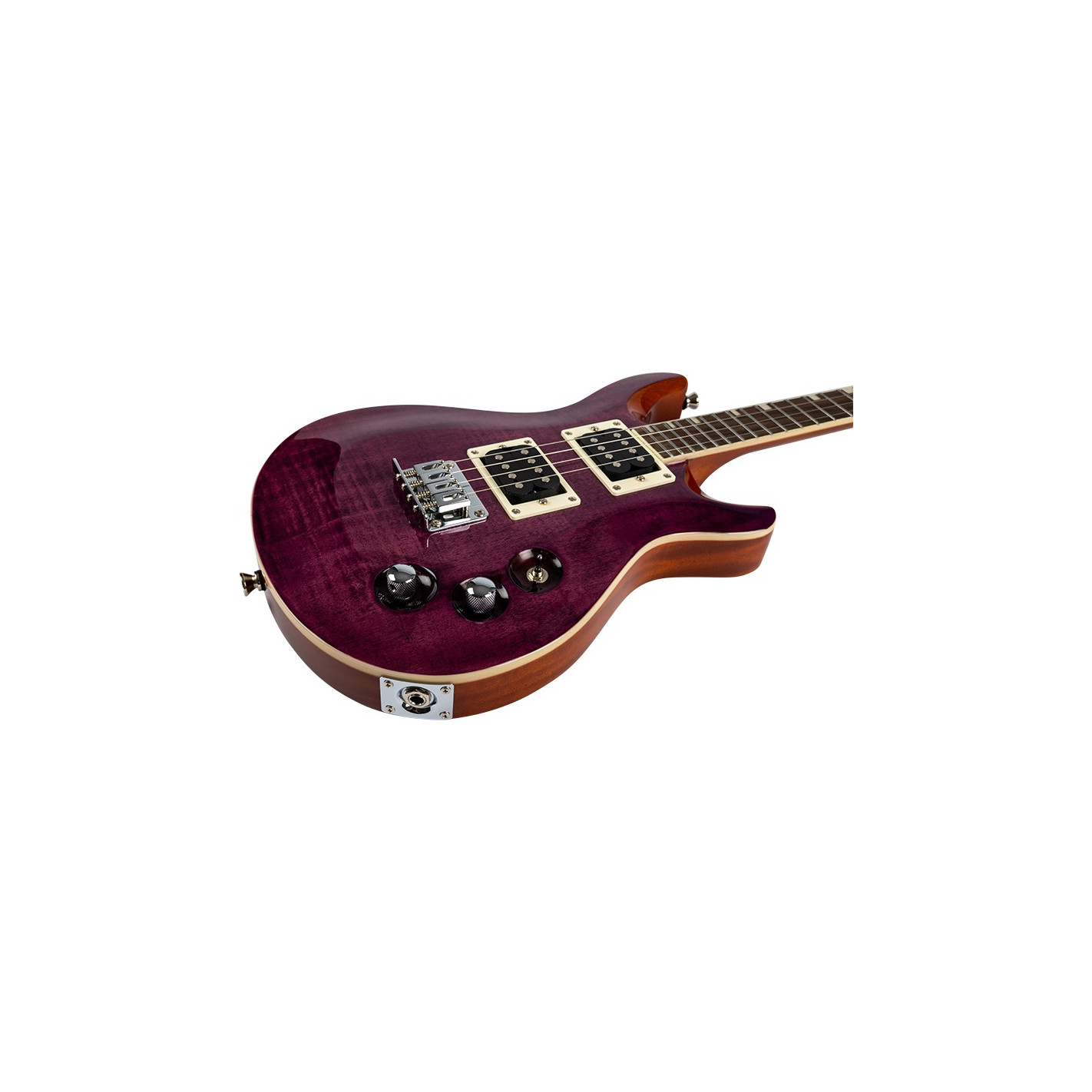 ¿Estás listo para el rock? El Flight Vanguard Tenor, Transparent Purple, Solid Body Tenor Ukulele, es un ukelele eléctrico de cuerdas de acero, que ofrece las posibilidades tonales de un verdadero ukelele eléctrico de la marca Flight Ukulele. El ukelele en sí tiene una preciosa tapa de arce flameado en color púrpura transparente con cuerpo y mástil de caoba y marcadores de trastes con rayas de aspecto elegante. El ukelele cuenta con un ribete de ABS blanco, un puente fijo, encordado a través del cuerpo, pastillas humbucker duales, herrajes cromados, controles individuales para el volumen y el tono, y un interruptor de tres vías. Con su aspecto clásico y su fantástico sonido, estará listo para rockear en cualquier lugar, así como para añadir cualquier pedal de efectos, o stompboxes a su sonido final amplificado. Los Ukeleles Eléctricos Flight representan un gran valor y alta calidad-así que compre el suyo hoy y lleve a Flight en su viaje eléctrico.