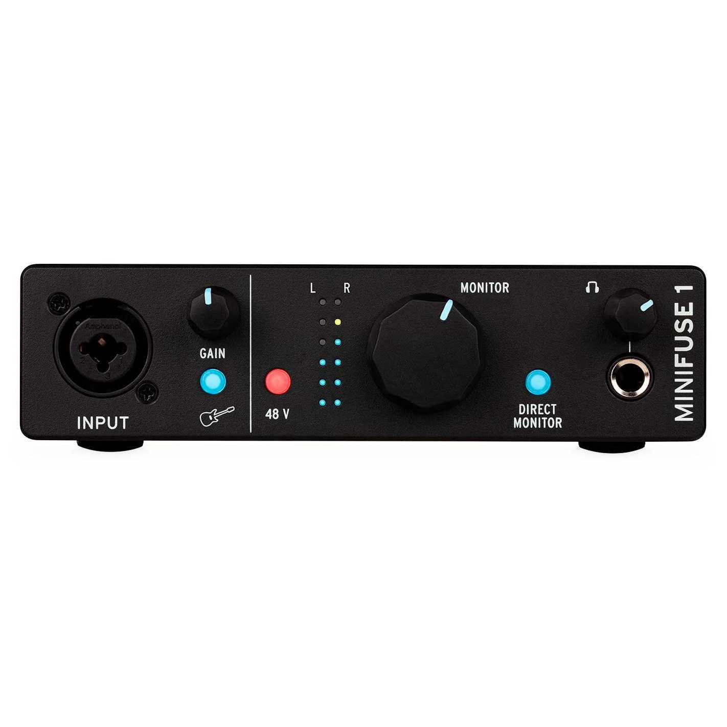 Interfaz USB compacta para grabación de voz, guitarra, sintetizadores y otros. Acabado negro.